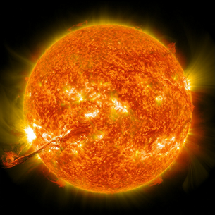“Filamen panjang material Matahari meletus dari atmosfer Matahari, atau korona, ke luar angkasa,”